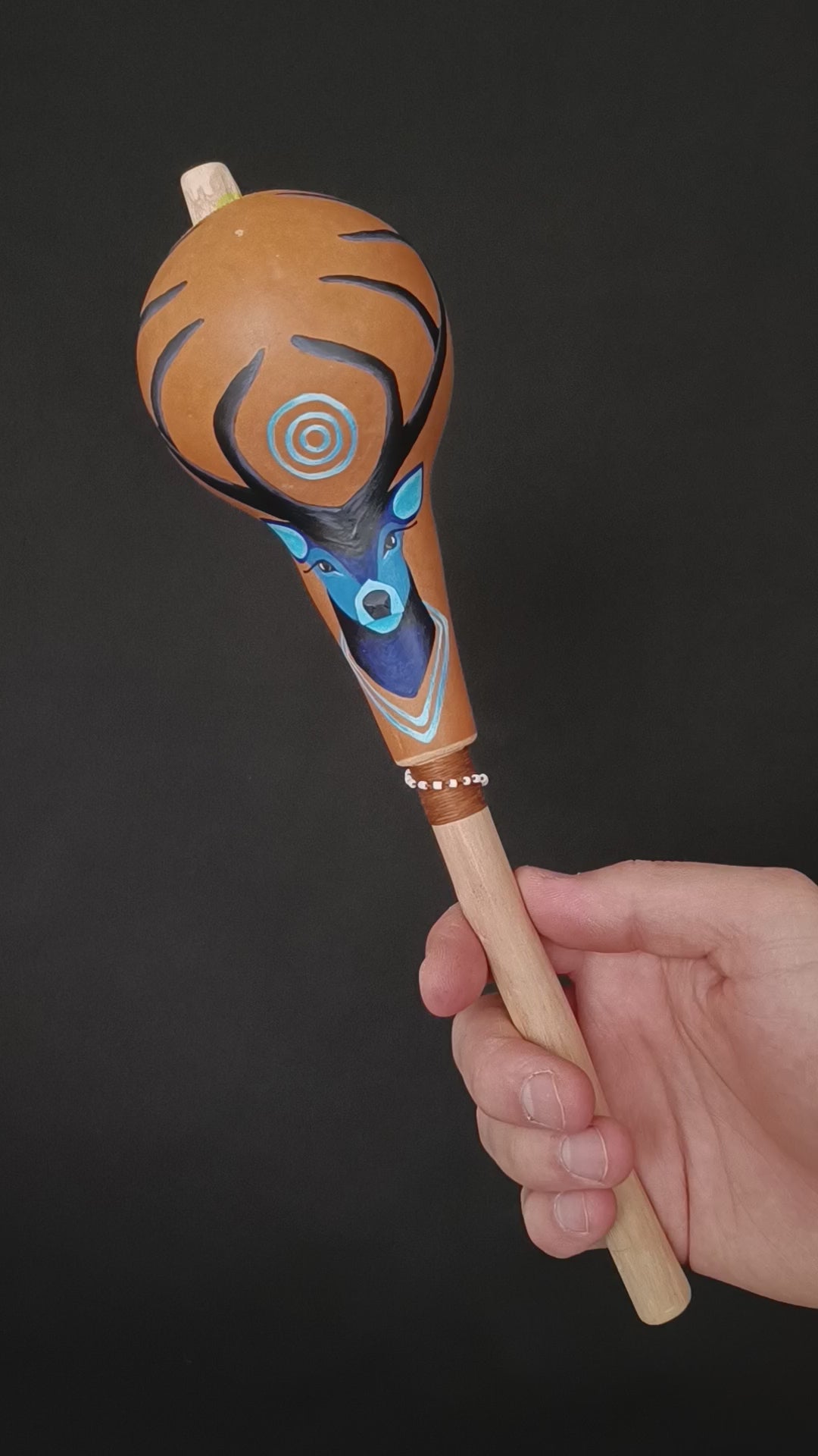 Sonajero artesanal inspirado en Kauyumari, el venado azul, guía espiritual en la tradición wixárika.